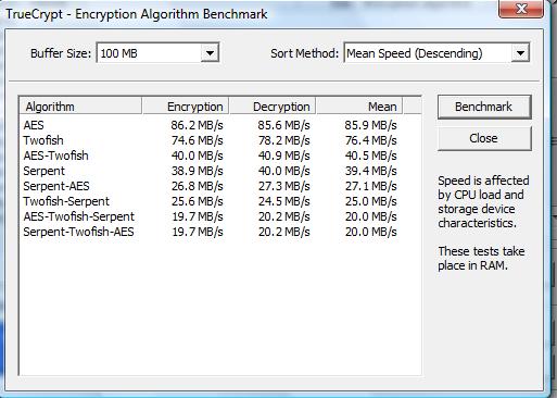 Well truecrypt 6.1 has been released and I thought it was time to update my machine. Since I’ve started using truecrypt I’ve kept screenshot of the benchmarks so for the ones who love numbers here they are. I’ve also made volume headers backup and disabled the boot message that states the machine is encrypted with truecrypt. I have to admit I’m totally fond of truecrypt it’s easy and good for free. Oh and YES I’ve made volume header backups and rescuedisks, you never know when bad luck strikes.