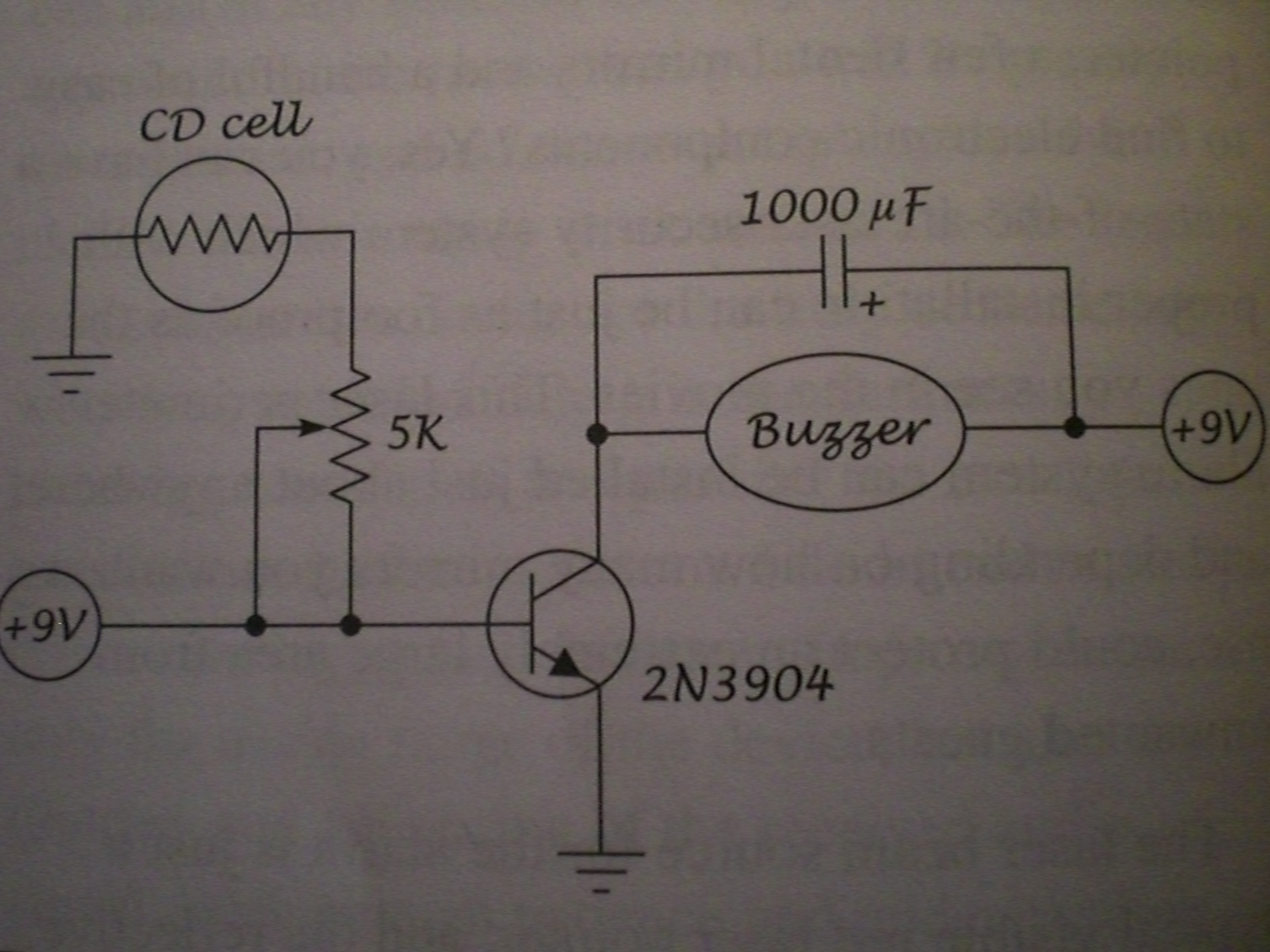 After catching up with the basic rules about current calculations and how to read schematics I went on and TRIED to read the laser alarm schematic in the book: