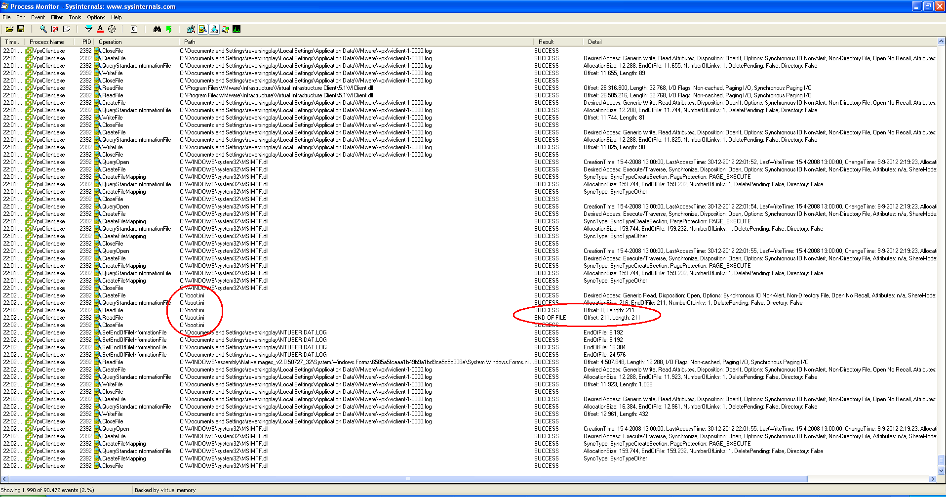 Hmm the client gives us an error stating that the hostname can’t be resolved which doesn’t really answer the question if the attack worked or not. So let’s have a look with process monitor: