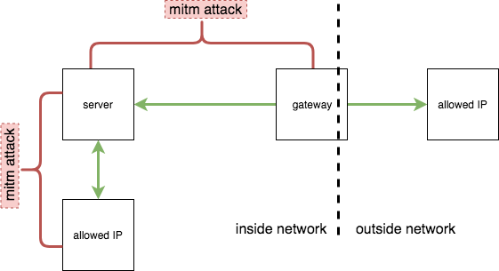 - One mitm attack focusing on the traffic between the server and the allowed IP