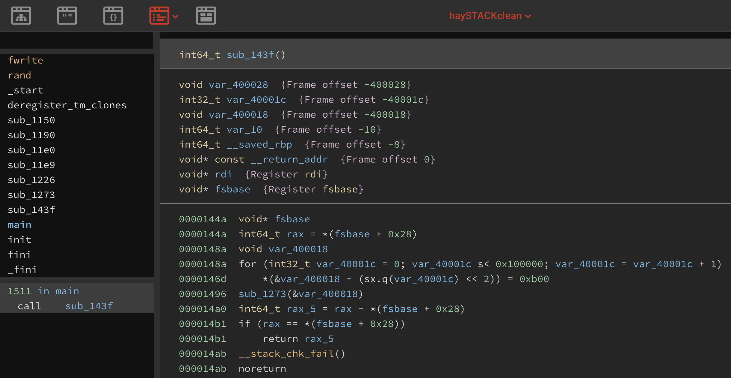 This is a quick post on our adventures with binary ninja and the haySTACK challenge from this year’s CSAW 2021. On a lost evening @donnymaasland & @nebukatnetsar were playing around and said: Well this looks fun, let’s try it out with Binary Ninja.