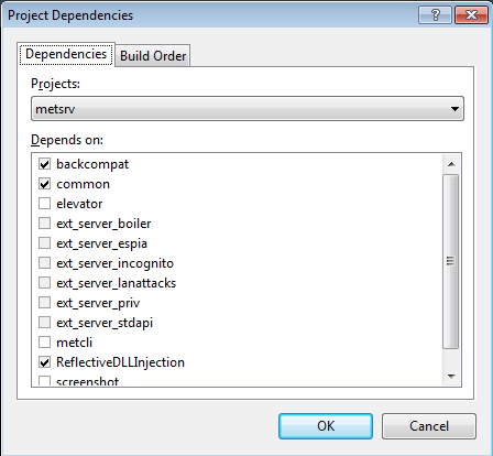You can play with a lot of them, be careful this is that moment that you can actually break something. I’ve only played with “Optimization” and “Favor size or speed” which was enough to lower the detection rate to 6/46. Sometimes a project also contains dependency which if also modified could lower the detection rate even further. For meterpreter you can view this by right-clicking on the project and choosing “project dependencies”: