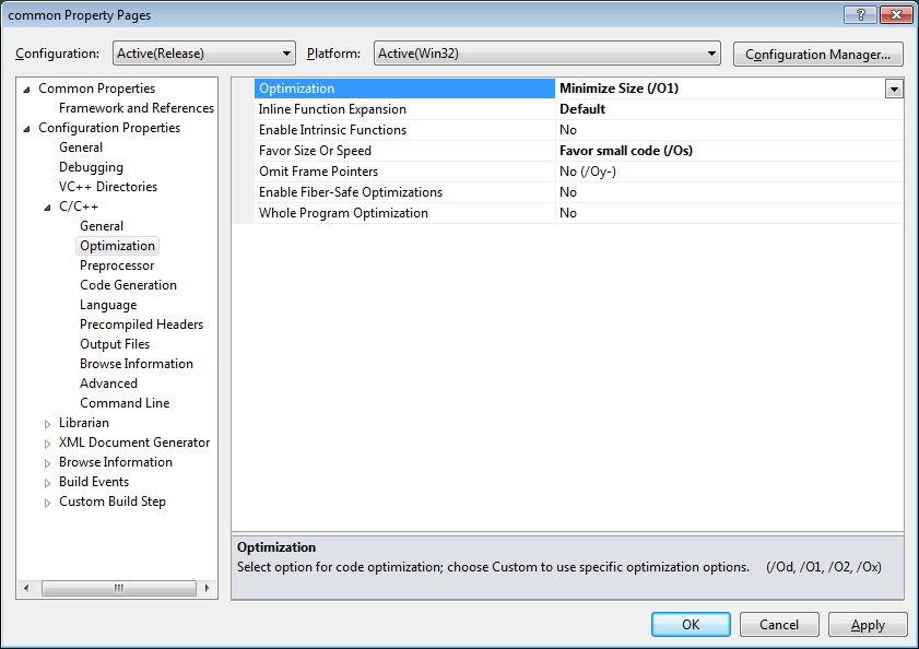 All the previous steps still apply, but also make sure to unload the project “ext_server_sniffer”, although the answer can also be easily found by searching for the error. This is kinda all it takes to bring it down to the showed 16/46 from the normal 35/46 that meterpreter is rated when being uploaded for analysis. If you want to lower it further you can adjust the optimization options of the compiler. Depending on the project you want to adjust, the meterpreter one is called “metsrv”, right click on it and choose properties –> configuration properties –>c/c++ –> optimization:
