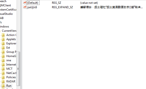 When working with the registry_persistence module, it turns out that one of the registry entries turns into garbage. At first I blamed myself of course, but it turned out that this could probably be a bug in the meterpreter code of which I’m not sure if it really is a bug or if there is a new API call which I haven’t found yet. So when executing the module the registry looks like this: